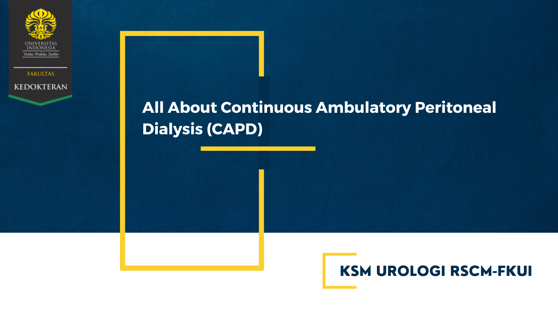 Selamat datang di mata kuliah All About CAPD (Continous Ambulatory Peritoneal Dialysis) dan selamat bergabung dengan pembelajar lainnya. Mata kuliah ini akan mempelajari tentang anatomi dan fisiologi ginjal, penyakit chronic kidney disease (CKD) secara umum dan berbagai pilihan renal replacement therapy. Selanjutnya akan dijelaskan dasar – dasar dari Continuous Ambulatory Peritoneal Dialysis (CAPD), berupa indikasi, persiapan, dasar-dasarteknis, teknik pemasangan CAPD (pendekatan terbuka dan laparoskopi). Setelah mempelajari MK ini, diharapkan peserta mampu u mengembangkan pemahaman tentang anatomi dan fisiologi ginjal, serta mempelajari gambaran umum mengenai Chronic Kidney Disease (CKD) beserta opsi renal replacement therapy yang diperlukan. Peserta juga akan memahami protokol dasar dan sejarah Continuous Ambulatory Peritoneal Dialysis (CAPD), termasuk indikasi penerapannya dan persiapan alat yang dibutuhkan. Selain itu, peserta akan memperoleh penguasaan teknik CAPD, baik melalui pendekatan laparoskopi maupun operasi terbuka, dengan fokus pada prosedur dan akurasi yang tepat. Terakhir, peserta akan mengembangkan kemampuan dalam manajemen pasca-pemasangan CAPD, termasuk identifikasi dan penanganan komplikasi serta memberikan edukasi kepada pasien mengenai penggunaan CAPD. Program ini menyediakan wawasan komprehensif tentang ginjal, CKD, CAPD, dan perawatan pasien dengan penyakit ginjal kronis.