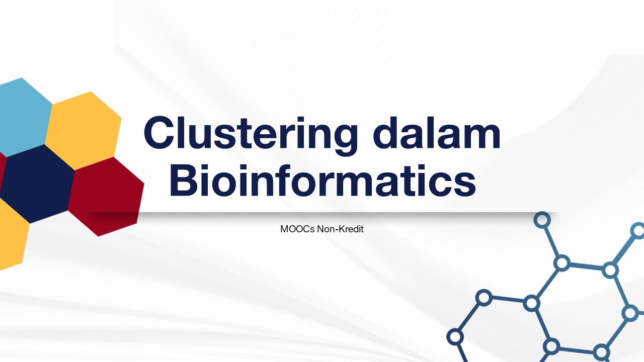 Selamat datang di mata kuliah Clustering dalam Bioinformatics dan selamat bergabung dengan pembelajar lainnya. Materi pembelajaran akan fokus kepada analisis clustering dalam bioinformatics dengan menggunakan data genome seperti sequence dan ekspresi gen. Topik – topik yang dibahas mencakup: Teknik-teknik Clustering, Metode Biclustering, Kaitan clustering dan Bioinformatics, Analisis clustering dengan menggunakan studi kasus pada data Bioinformatics, serta penggunaan tools. Metode pembelajaran menggunakan pendekatan asinkron dan self-paced learning. Setiap peserta MOOC pada mata kuliah ini akan mendapatkan sertifikat jika dapat menyelesaikan perkuliahan sampai akhir.